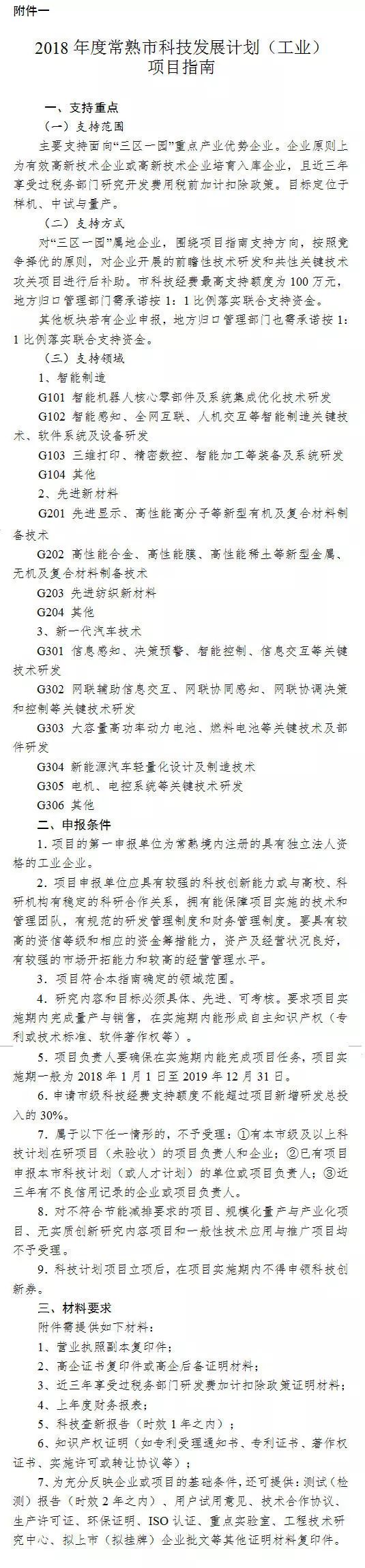 1、2018年度常熟市科技發(fā)展計(jì)劃(工業(yè))項(xiàng)目指南