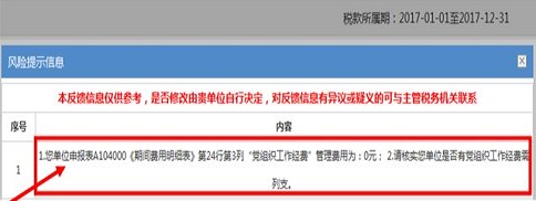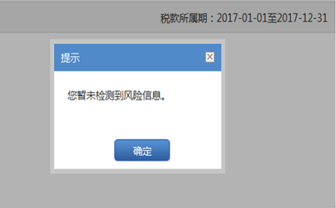 5、 點擊*三步提示框中的“確定”按鈕后如沒有出現申報強制校驗信息或忽略提示校驗,系統即刻對您提交的申報表數據和相關信息進行風險掃描,您在較短的時間內(通常不超過30秒)即可接收到風險提示信息。