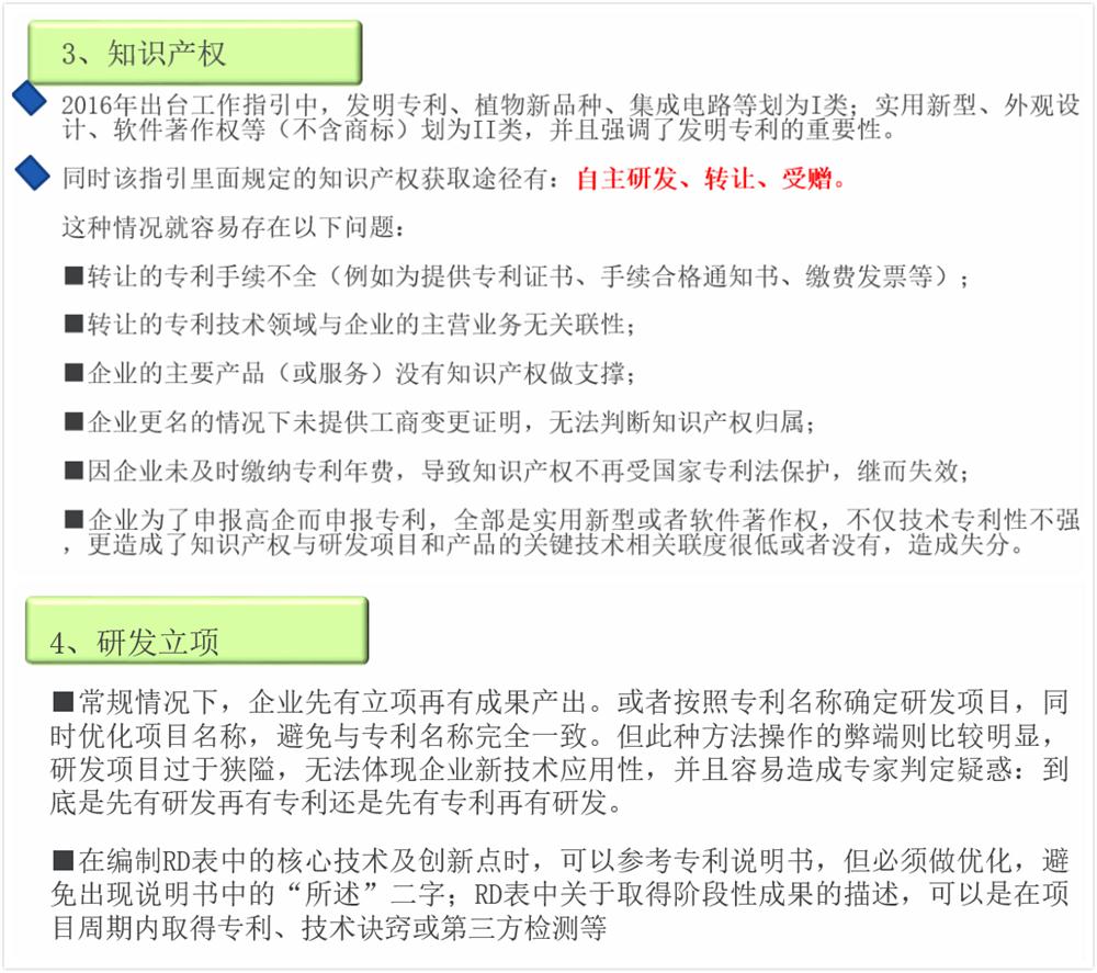 近些年來,高新技術企業認定失敗的案例屢見不鮮,甚至有部分企業被取消高新技術企業資格的報道也屢見報端,這其中究竟會存在哪些問題呢?眾說紛紜,使得問題本身的解決方案也各不相同,但*終不能成為真正有效的解決方案。因為從業的相關人員并沒有從本身高新技術企業內在的邏輯關系和企業當前的實際情況去考量,始終停留在材料和數據的表面,更何況數據具有既定性和不可更改性,特別是財務數據,繼而進入申報時一味的進行文字包裝和修飾,*終導致認定失敗,并沒有去改變企業本身在運營和日常活動中存在的實際問題。另外一方面,高新技術企業缺乏一定的風險意識,在每年享受稅收利好的同時嚴重忽視了高新技術企業這個體系對于企業提出的各種要求,甚至是更高要求,一勞永逸的思想禁錮了企業本身在這個很小的領域的提升動力。當然出現這些問題的因素很多,例如企業內部人員兼職管控、企業內部人員不夠專業、外部輔導機構不負責任等,那么究竟如何在一定程度上去盡量規避這些風險呢?智為銘略小編在此做一點簡單的基礎性分享,首先分享高新技術企業認定失敗的常見原因,具體如下: