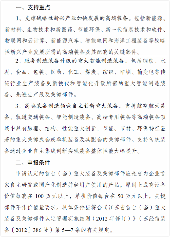 (三)江蘇省首臺(套)重大裝備及關鍵零部件認定
